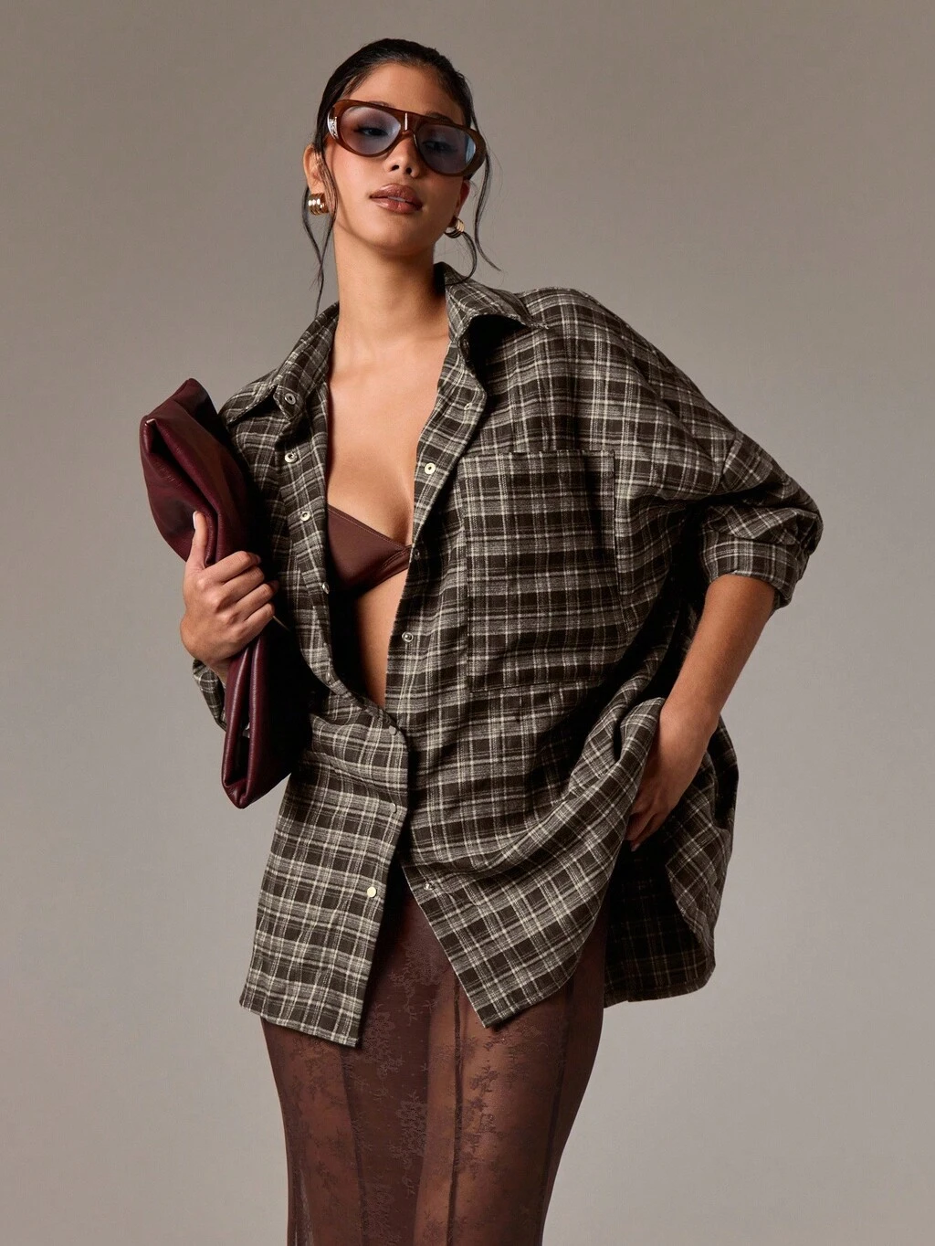 Oversized Checked Shirt With Patch Pocket
