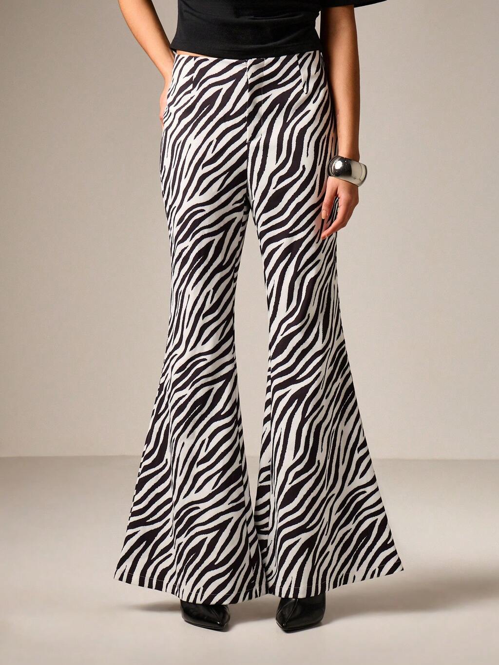 Sequin Animal Print Wide Leg Pants With Drawstring